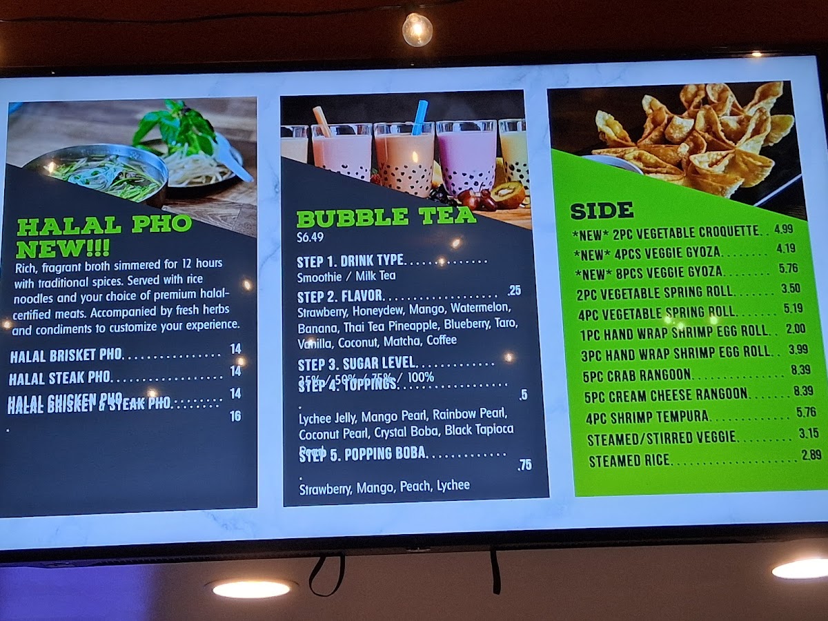 Our signature pho features tender, premium halal served in a deeply flavorful broth that's been lovingly simmered for 12 hours. We slow-cook beef bones, aromatic spices including star anise, cinnamon, cardamom, and cloves, along with charred onion...